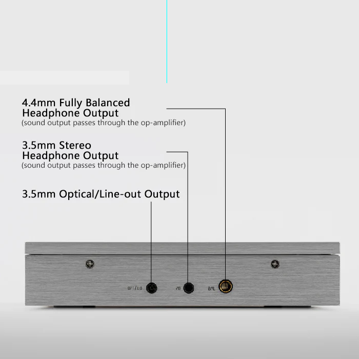 DISCDREAM 2 Ultra features two output interfaces for driving headphones. The 4.4mm interface provides fully balanced output commonly used in modern HiFi players, delivering 4Vrms/222mW undistorted output power under a 32 Ohm load.