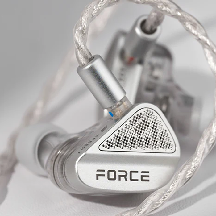 FORCE houses two custom dynamic drivers: an 8.2mm beryllium-coated mid-high driver and a 10mm titanium-coated bass driver, both using PU-suspended diaphragms. This setup, based on TANCHJIM’s DMT 4 Ultra driver platform, provides powerful bass, detailed mids, and sparkling treble.