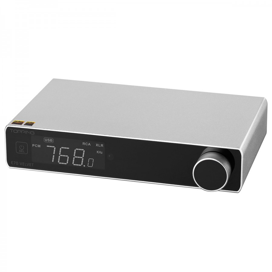 XMOS XU316, 16-core 3rd Gen USB Processor is placed a the core of the E70 Velvet. It enables high-resolution PCM and DSD audio signals on the E70 Velvet. Topping E70 Velvet through the USB input supports high-resolution PCM 32-Bit/768kHz and native DSD512 audio signals.