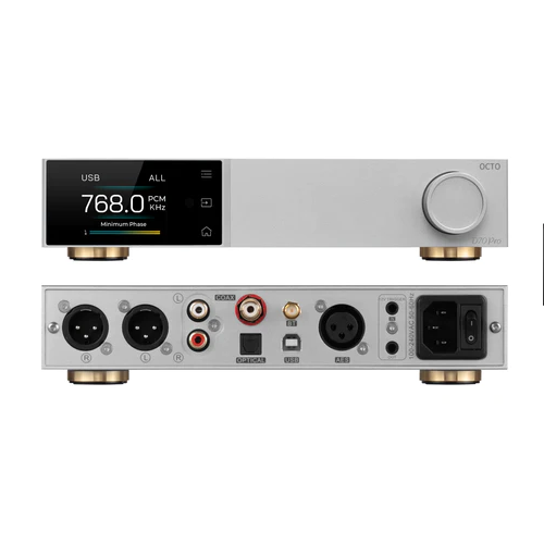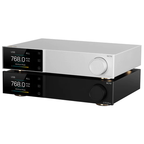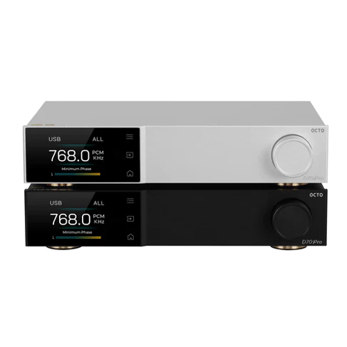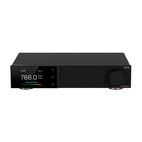 Get an amazing music experience with the D70 Pro Octo in your audio chain. We have full support for high-resolution 32-Bit/768kHz PCM signals and native DSD512 audio signals. With precisely designed hardware components, the D70 Pro Octo produces clean sound with low distortion ratings and high SNR/DNR performance.